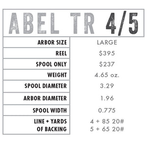 Crafted by our expert machinists in Montrose, Colorado, the TR is a lightweight masterpiece. An integrated precision-balanced clicker on the spool eliminates the need for a counterweight, yielding a clean look and retaining an iconic click-pawl sound. The pronounced palming rim is deliberately shaped to manually control drag pressure in all fishing conditions. The TR also features a large-arbor spool engineered to reduce line memory and increase retrieval rate. Machined stainless steel accents on both the frame and spool add that extra level of detail found only in an Abel reel.